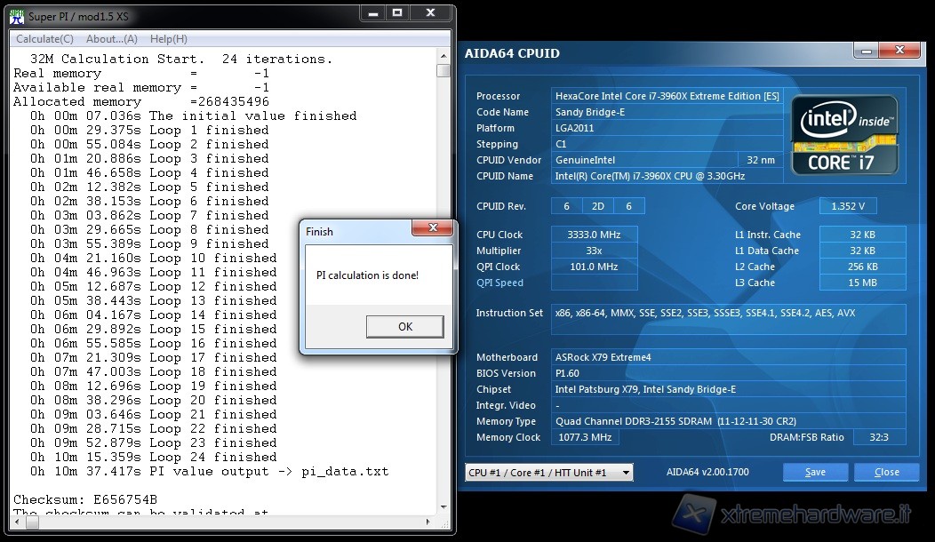 Abbiamo testato i moduli sul fronte della riduzione dei timing di accesso, cercando di trovare al contempo la stabilità nel superare il test. Di seguito il risultato raggiunto che ribadiamo essere indicativo. Superare un test del SuperPI da 1Mb in quanto test di tipo mono-core, non vuol dire essere sicuri che i moduli siano stabili a tale settaggio in presenza di un intenso carico di lavoro. A conferma di quanto precedentemente detto in merito alla bontà del controller IMC integrato nella CPU e sul tipo di scheda madre vi proponiamo un secondo test del più completo e difficile SuperPI 32M conseguito con successo con una diversa CPU e diversa scheda madre.
